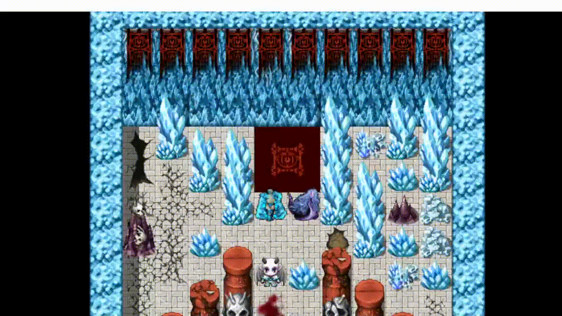 Considering the Baron and Baroness are more or less infernal blood mages, It seemed like there should be more blood. Luckily, The tileset I was using had a bunch of squares I wasn't going to use... So, I duplicated the file. Then I copied the ice tiles into the area I wasn't going to use, and went about manually editing them to add a bit more sanguine flair. The tiles I was already using didn't move in the file- so I was able to slot the new modified tileset file right in, and start using it!